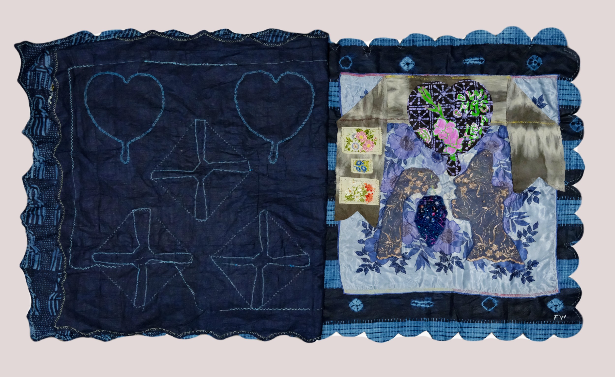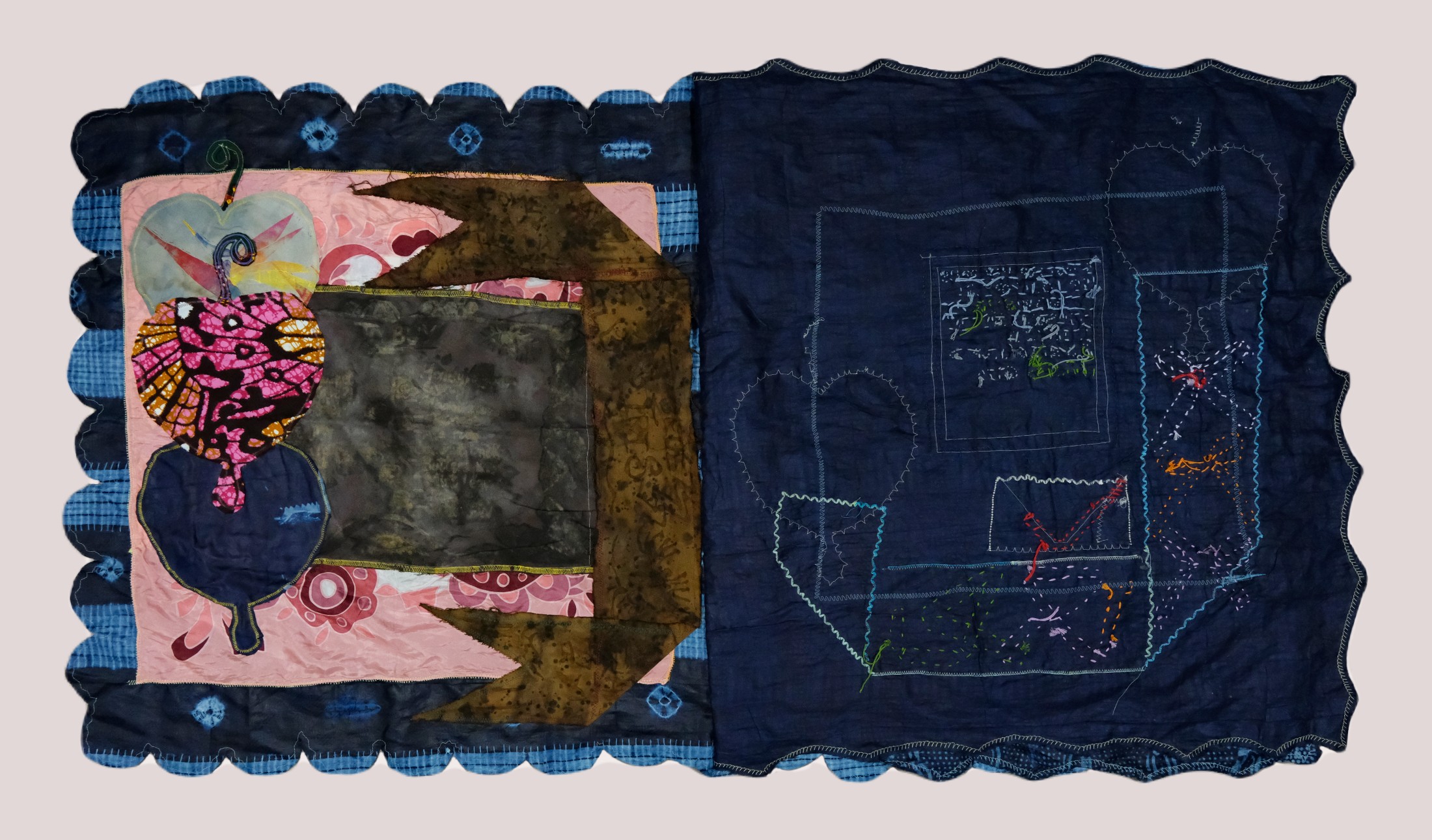 mixed media on Adire fabric