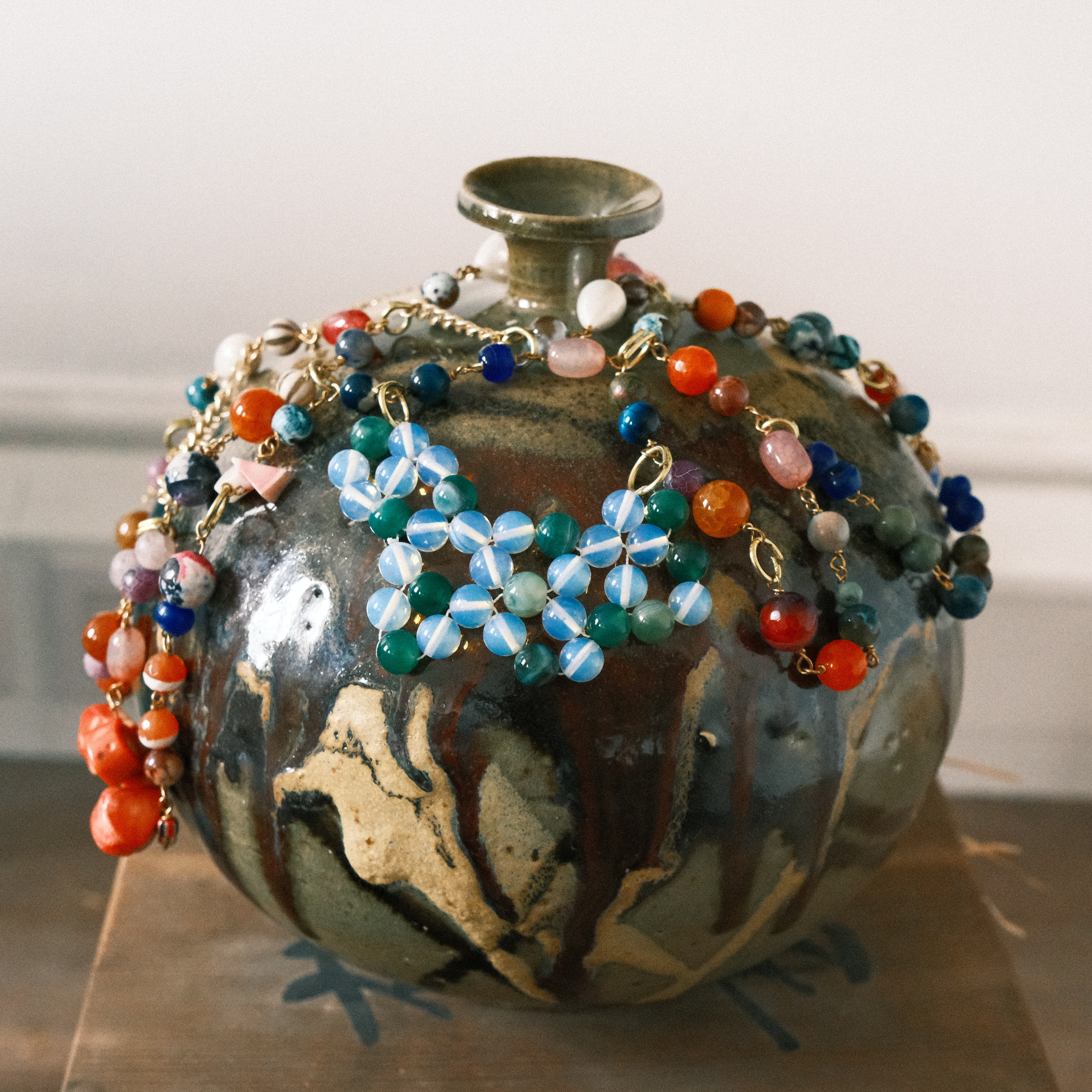 VARIOUS BEADED POTTERY: